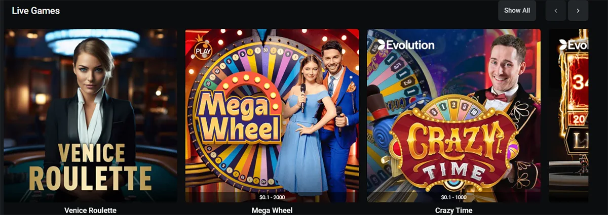 La plateforme propose plus de 12 000 jeux développés par des fournisseurs reconnus comme Pragmatic Play, NetEnt et Microgaming. L'offre comprend une collection étendue de machines à sous ainsi que des jeux de table et des options de casino live avec croupiers en direct.